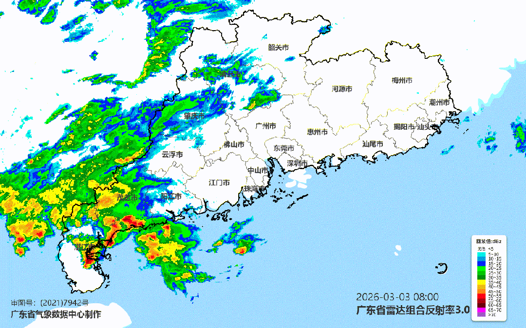 粤西和珠三角南部市县有中雨局部大雨或暴雨,部分市县伴有弱雷电、短时强降水和6~8级短时大风,其余市县阴天有小雨。最低气温:粤北8~12℃,雷州半岛18~20℃,其余南部沿海市县16~17℃,其余市县13~15℃。